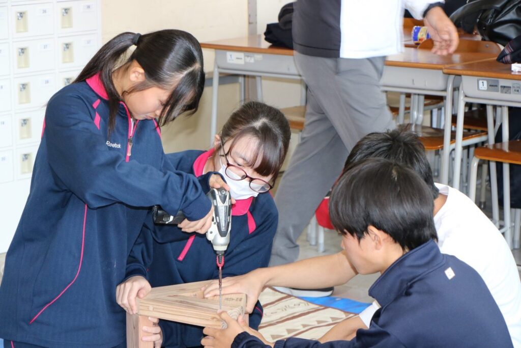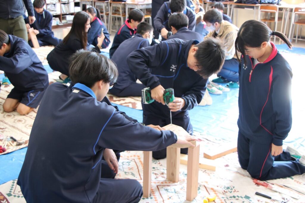 当日は、電動ドライバーや金づちを使ってイスの制作に取り組み、ものづくりの楽しさを感じながら真剣に作業する姿が印象的でした。