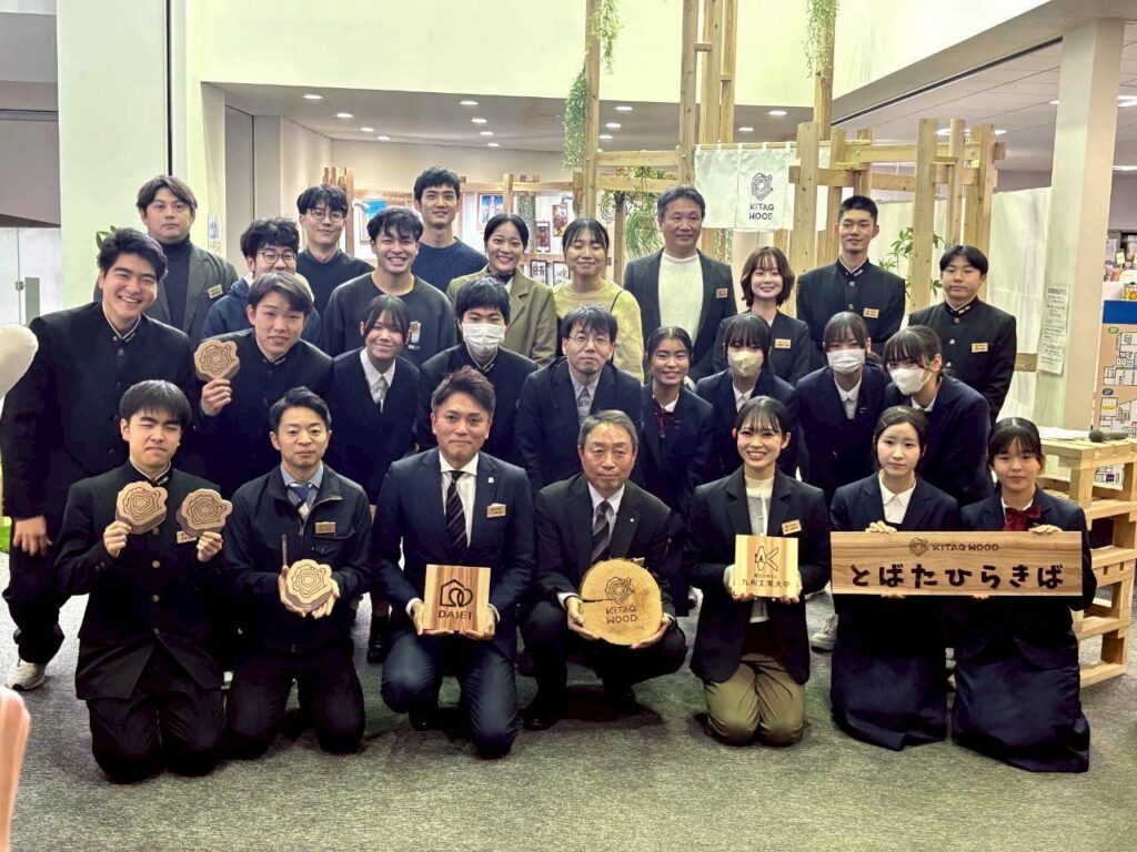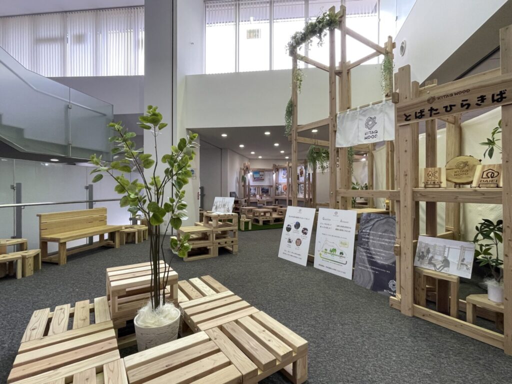 戸畑区役所・九州工業大学・大英産業による産学官連携プロジェクト「若者の居場所づくり」の一環として、KiTAQ WOODを活用した約84㎡のフリースペース「とばたひらきば」が完成いたしました。